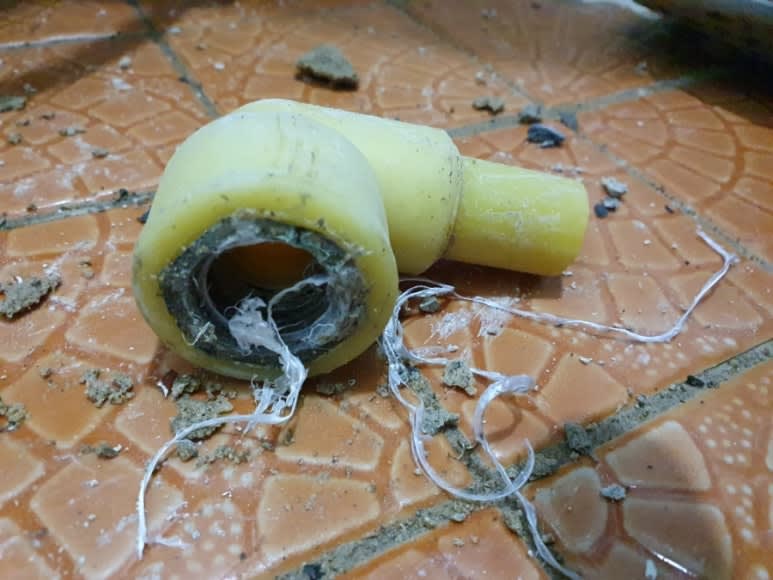 문제가 되는 배관이 명확히 확인된 이후, 고객님께 상세한 탐지 결과를 설명드리고, 간단하고 집중적인 수리를 위한 공정에 들어갔습니다. 탐지된 지점의 바닥 일부를 조심스럽게 철거한 후, 매립돼 있던 온수 PB 배관을 노출시켰고, 그 안쪽에서 실제 눈으로 확인 가능한 균열을 확인했습니다. 해당 균열은 배관의 노후와 외부의 미세한 충격이 누적되어 발생한 것이었으며, 균열 부위를 정밀하게 절단하고 신품 배관으로 교체하여, 견고하게 연결 및 수리 작업을 완료했습니다.